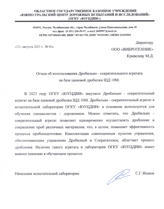 Объединение Щековой дробилки ЩД 10М и Сократителя САМ в единый технологический комплекс исключает этап перегрузки пробы, что снижает пыление и повышает производительность работы.