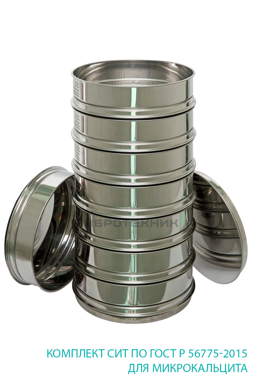 В процессе рассева проба микрокальцита распределяется в ситах по классам крупности.