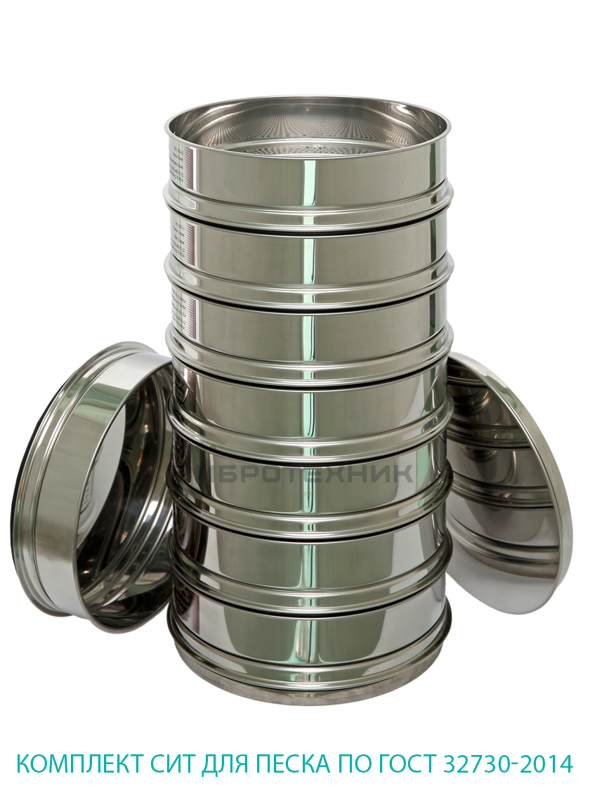 Ситовой анализ выполняется с помощью Анализатора с 7 ситами, поддоном и крышкой. Колонна сит может быть укомплектована промежуточными кольцами для увеличения высоты верхних сит, что позволяет загружать пробы большего объема.