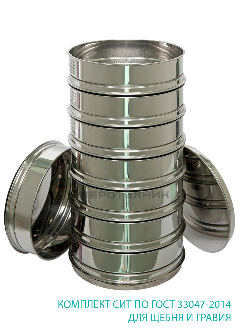 Ситовой анализ выполняется с помощью Анализатора с 7 ситами, поддоном и крышкой. Колонна сит может быть укомплектована промежуточными кольцами для увеличения высоты верхних сит, что позволяет загружать пробы большего объема.