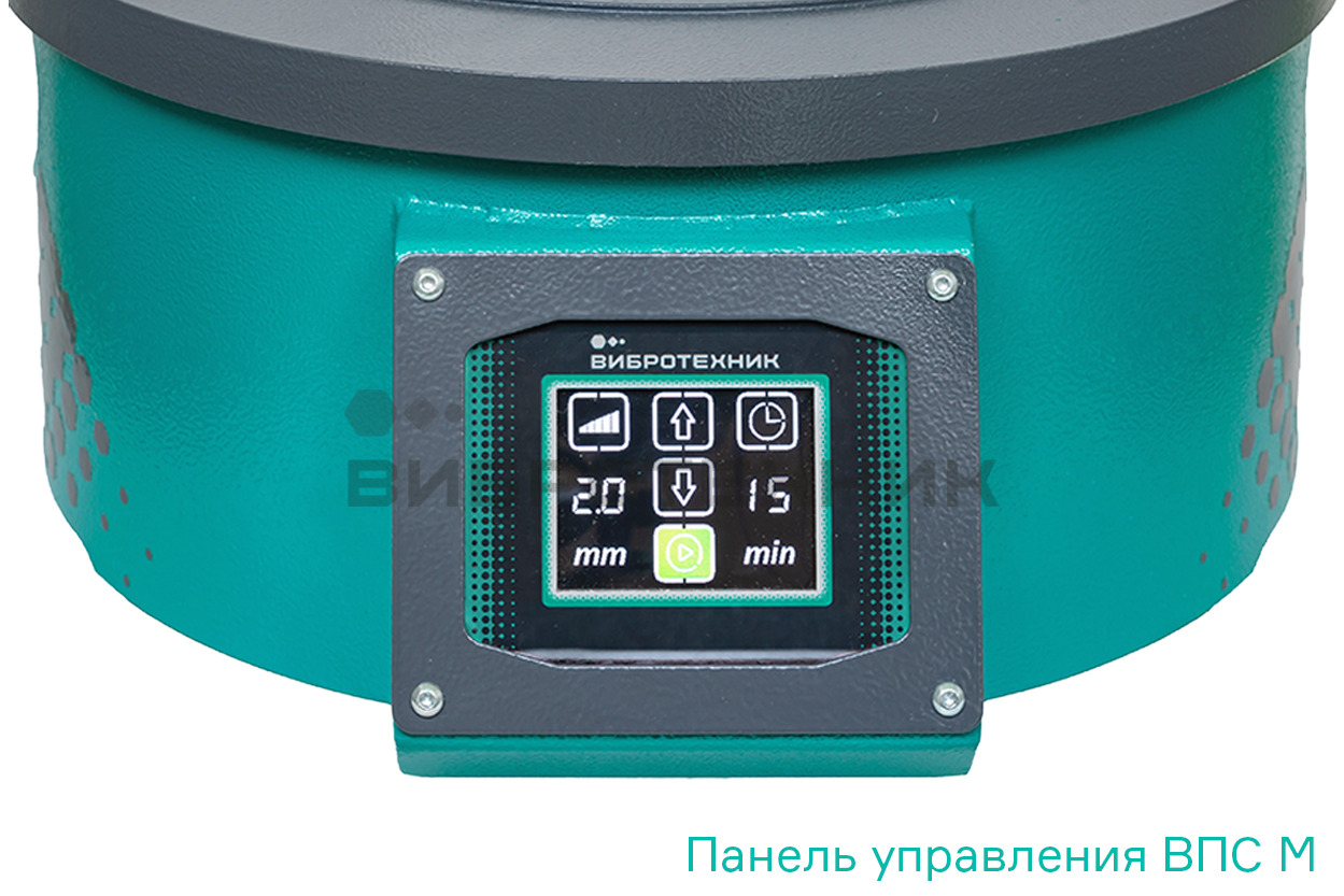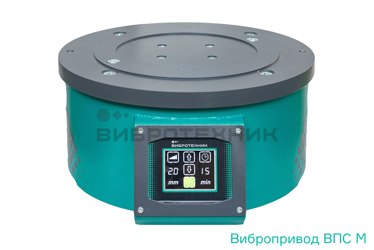 Электромагнитный привод, состоящий из катушки и якоря, позволяет производить регулировку амплитуды колебаний платформы от 0,1 мм до 2 мм с шагом в 0,1 мм. Установка времени работы вибропривода. Отображение заданных параметров во время работы вибропривода.