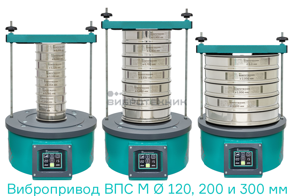 На платформу вибропривода могут быть установлены сита диаметром 120 мм, 200 мм и 300 мм. Вибропривод может применяться в качестве вибростола с нагрузкой на платформу до 10 кг.