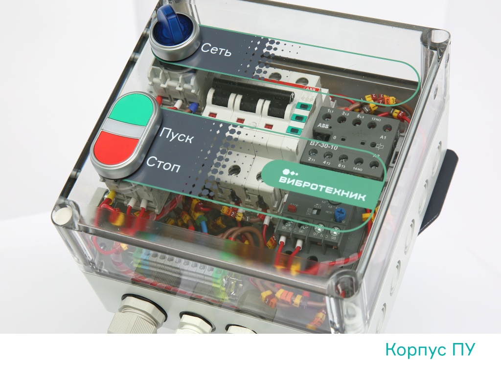 Корпус и крышка из ударопрочного пластика. Изготовление крышки ПУ из прозрачного пластика позволяет визуально контролировать состояние электрокомплектующих.