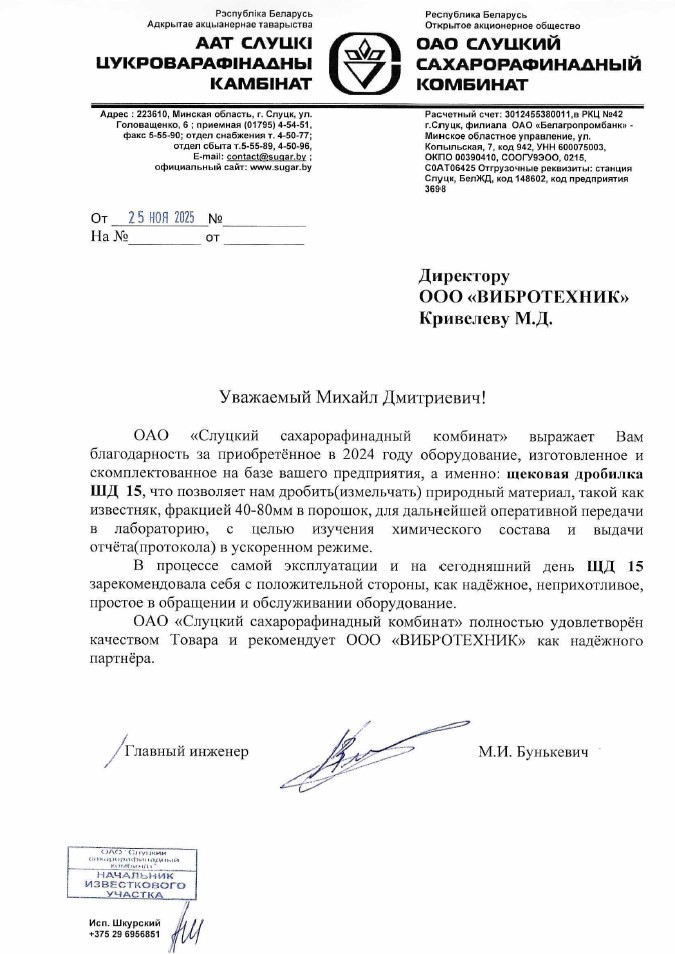 ОАО «Слуцкий сахарорафинадный комбинат»