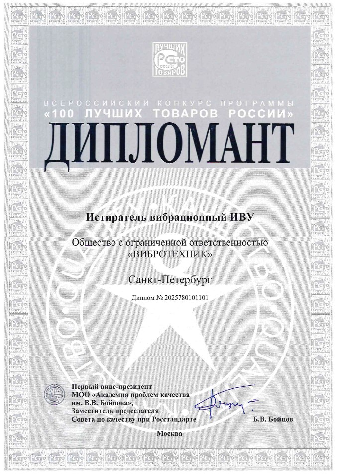 Компания «ВИБРОТЕХНИК» уделяет большое внимание вопросам качества выпускаемой продукции, совершенствования системы менеджмента качества на предприятии, повышения удовлетворенности клиентов, развития экспортной деятельности. Наши усилия в данных направлениях отмечены многочисленными наградами и дипломами, часть из которых представлена ниже.